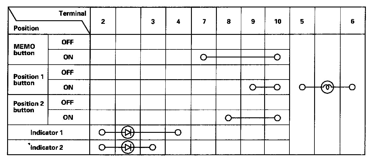 4. Check for continuity between the terminals in each switch position according to the table.