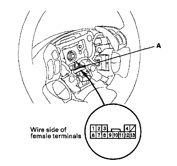 2. Disconnect the steering wheel subharness connector (A) from the cable reel.