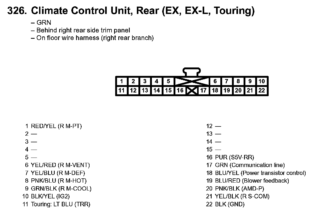 326. Climate Control Unit, Rear (EX, EX-L, Touring):