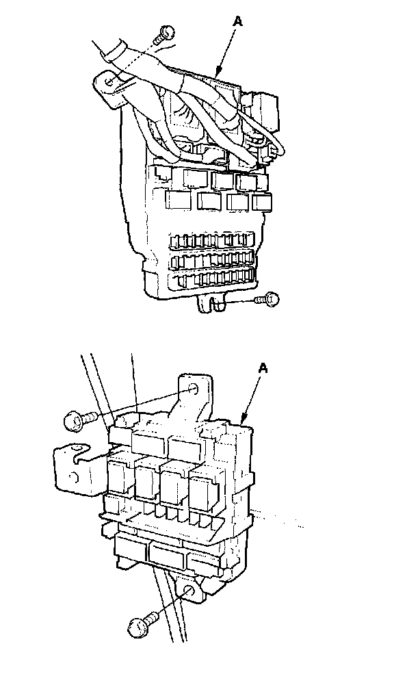 4. Disconnect the connectors from the fuse side of the driver's (or passenger's) under-dash fuse/relay box (A).