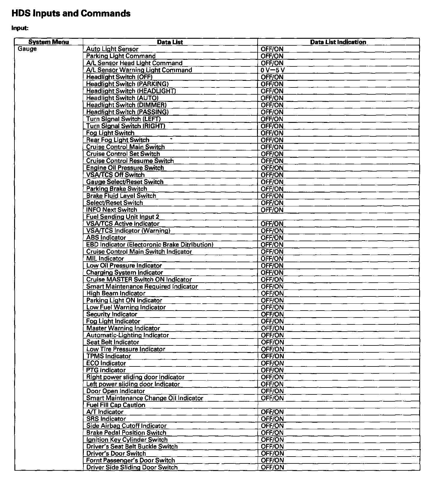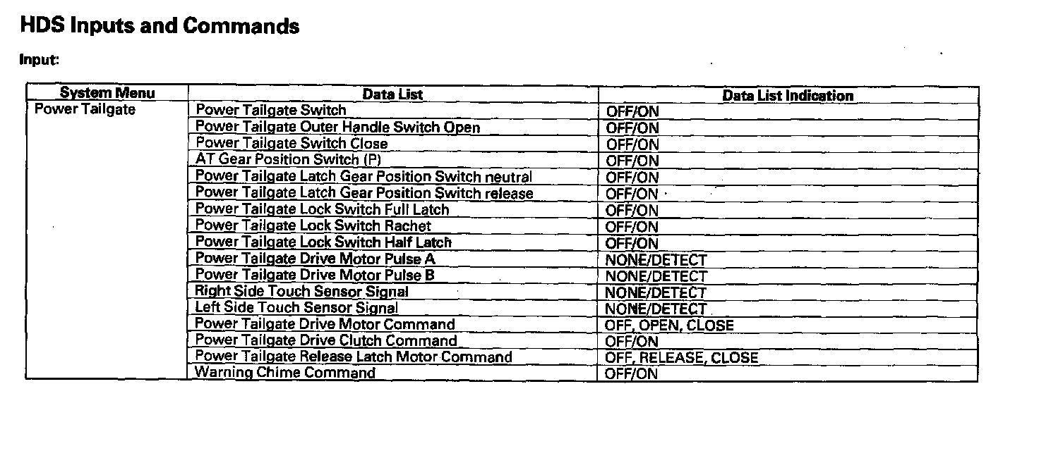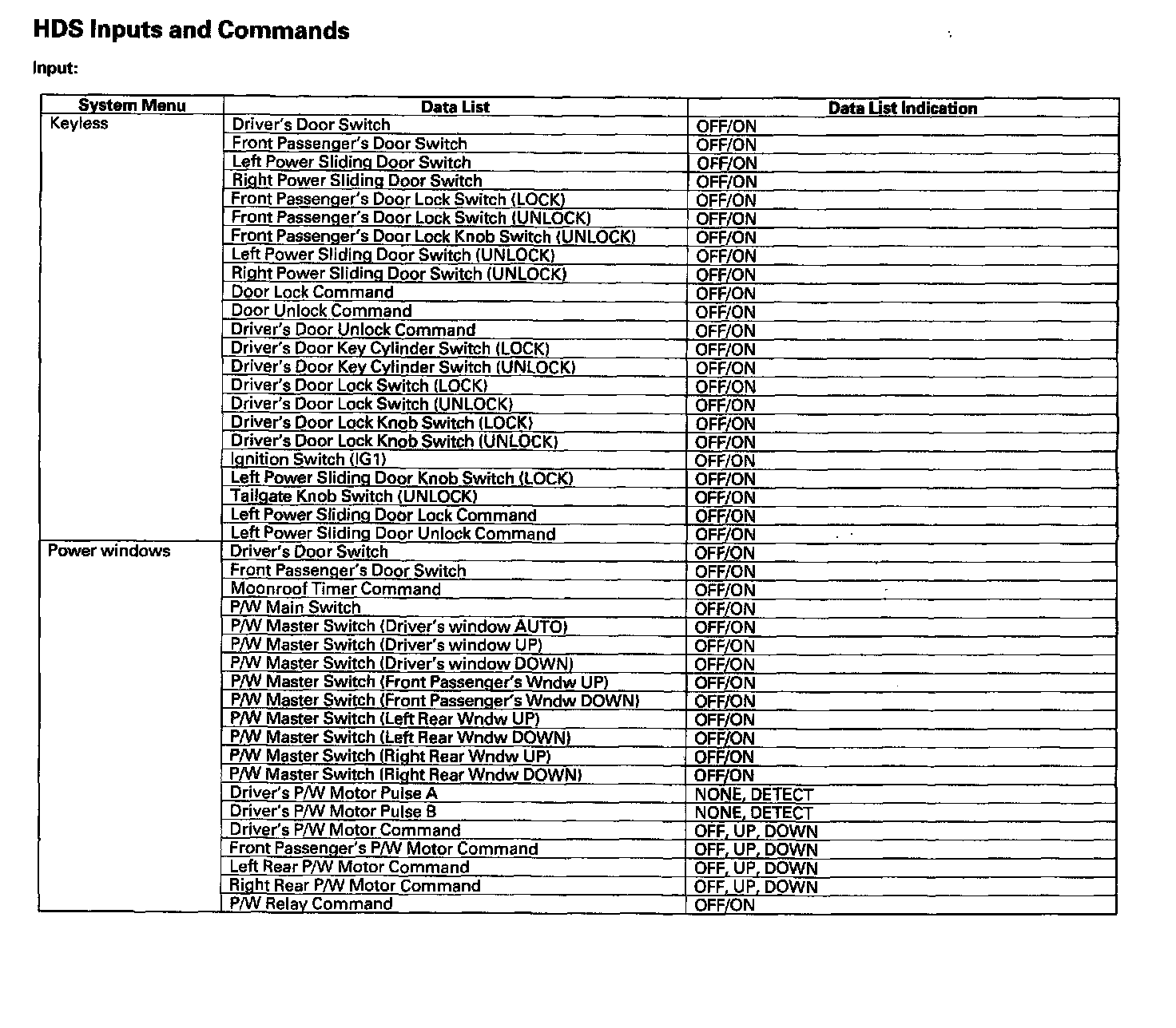 HDS Inputs And Commands: