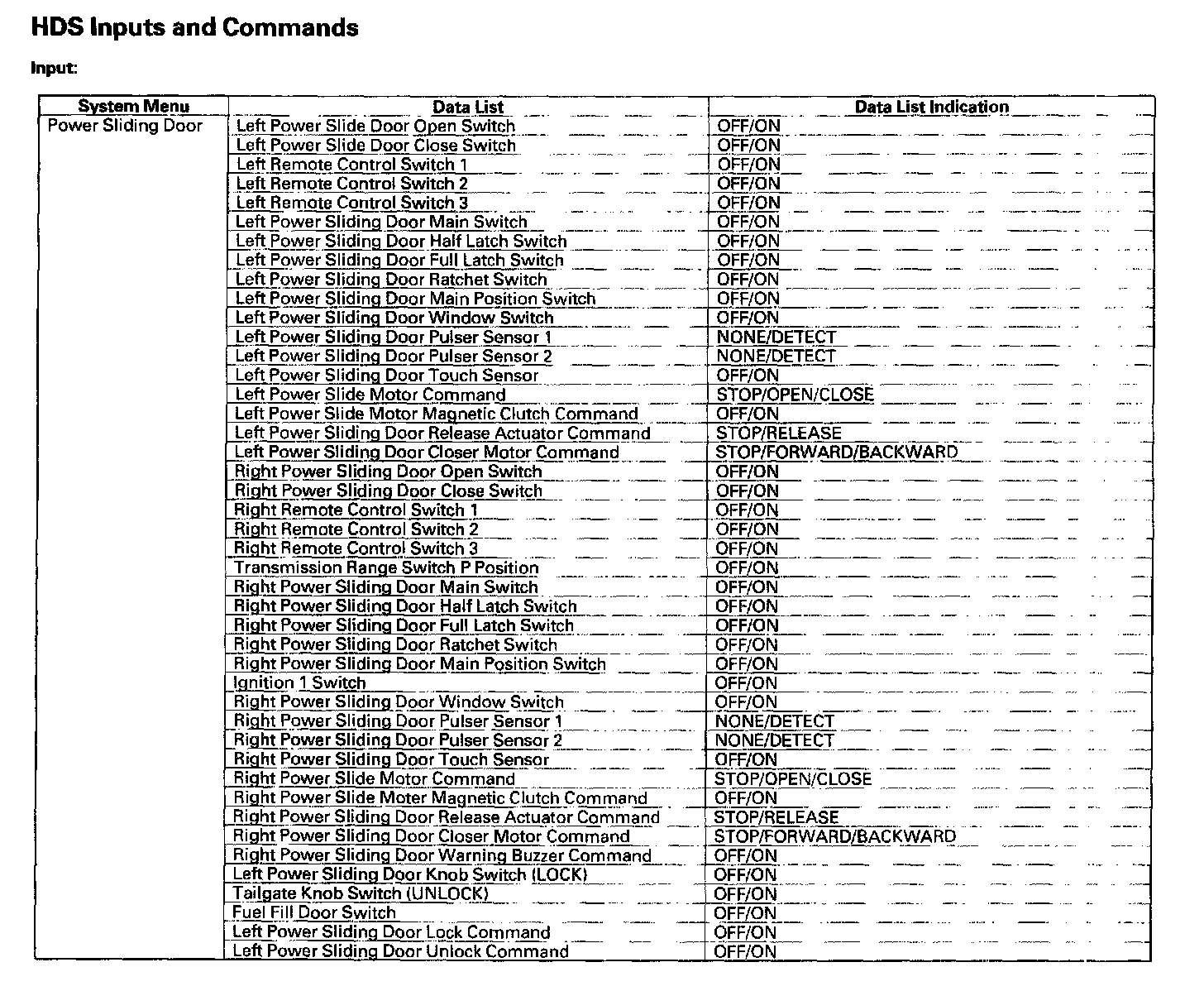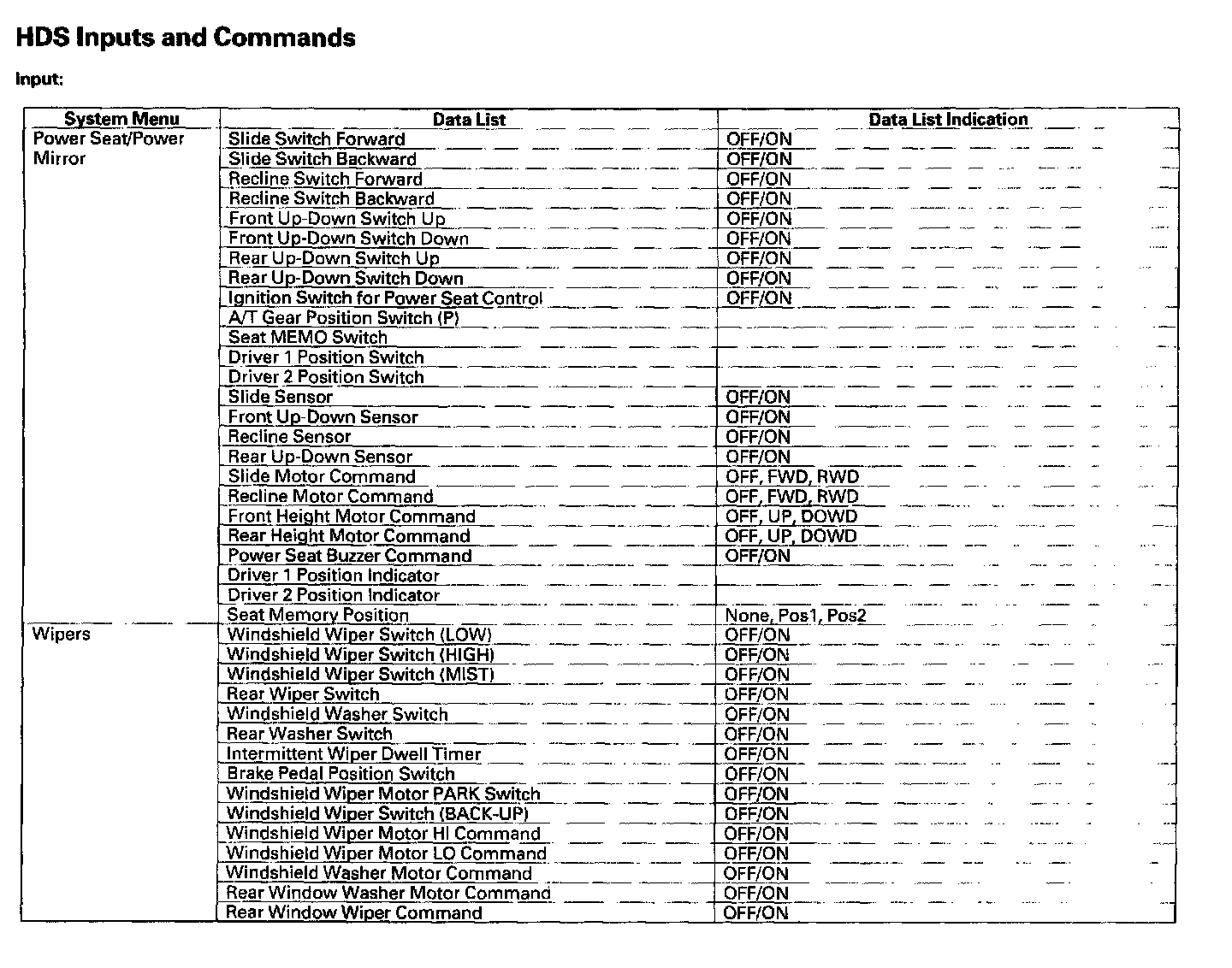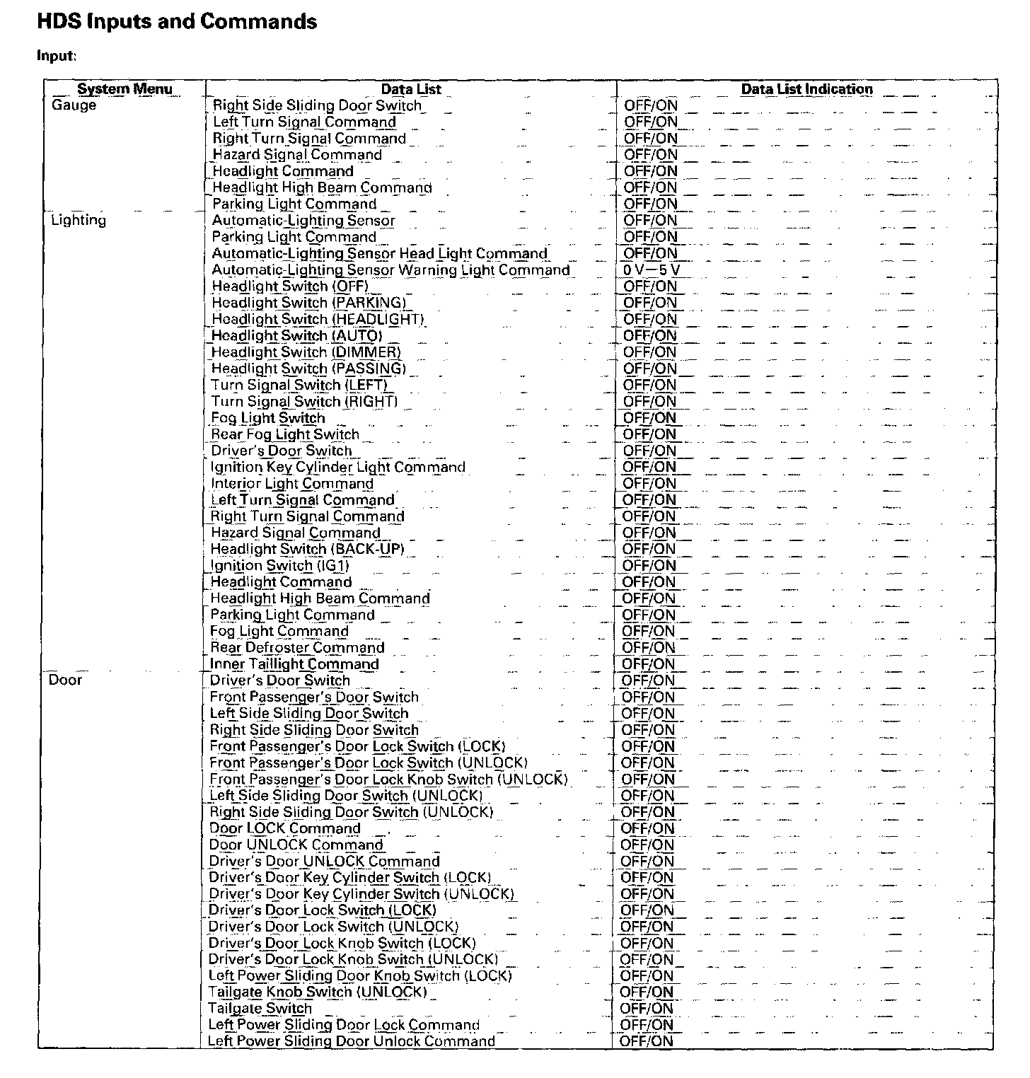 HDS Inputs And Commands: