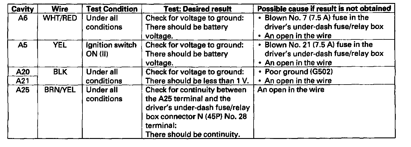 4. Reconnect connector A to the gauge control module, and make these input tests at the connector.