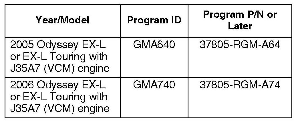 2005-06 Odyssey EX-L/EX-L Touring with J35A7 (VCM) engine - ALL