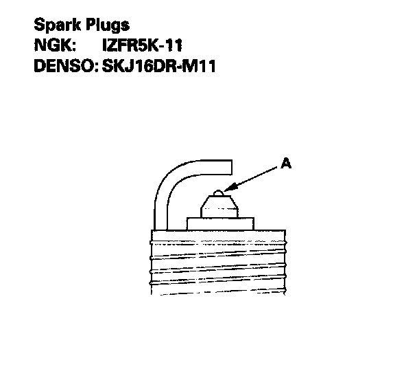 2. Do not adjust the gap (A) of iridium tip plugs; replace the spark plug if the gap is out of specification.