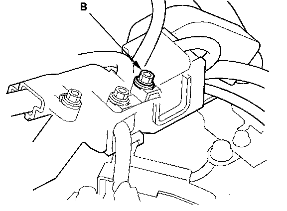 15. Connect the oil pressure gauge to the 1st clutch pressure inspection hole (B).