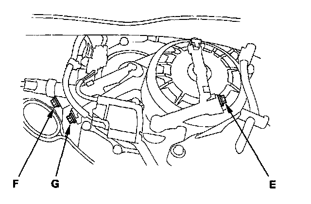 24. Connect the oil pressure gauge to the 3rd clutch pressure inspection hole (E), 4th clutch pressure inspection hole (F), and 5th clutch pressure inspection hole (G).