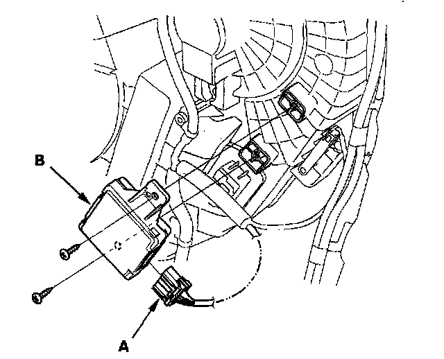 2. Disconnect the connector (A) from the rear control unit (B), then remove the self-tapping screws and the rear climate control unit.