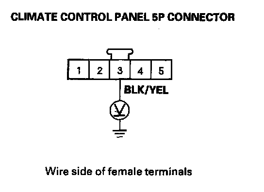 6. Check for continuity between the No. 1 terminal of the climate control panel 5P connector and body ground.