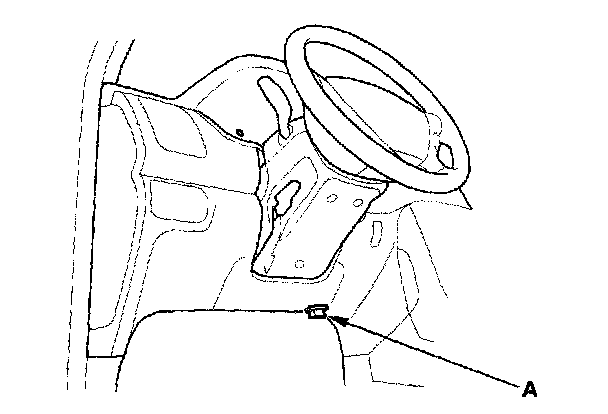 2. With the ignition switch OFF, connect the HDS to the 16P date link connector (DLC) (A) under the right side of the driver's dashboard.