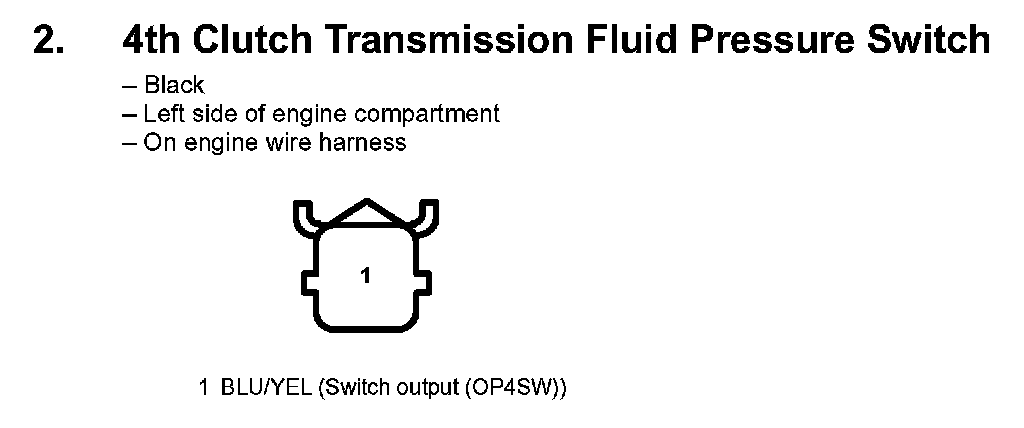 2. 4th Clutch Transmission Fluid Pressure Switch: