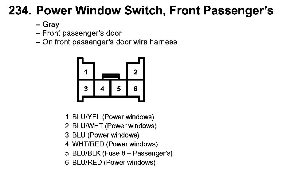 234. Power Window Switch, Front Passenger's: