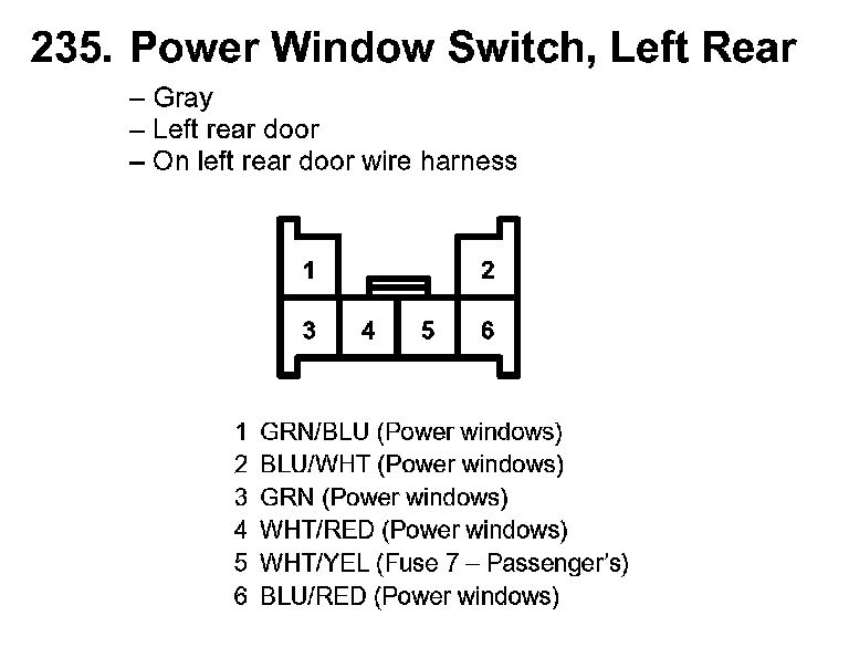 235. Power Window Switch, Left Rear: