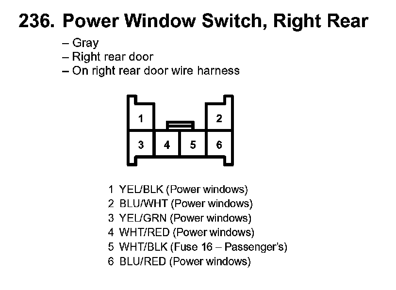236. Power Window Switch, Right Rear: