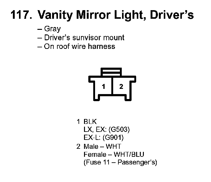 117. Vanity Mirror Light, Driver's: