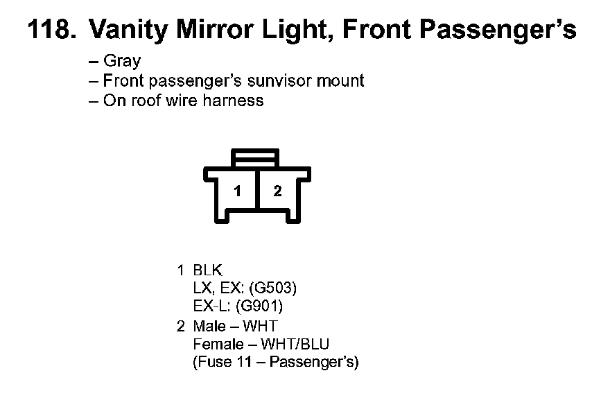 118. Vanity Mirror Light, Front Passenger's: