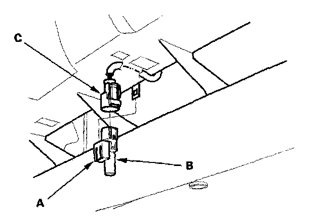 Outside Air Temperature Sensor Replacement1. Lift the tab (A) to release the lock, and remove the outside air temperature sensor (B) from the back of the front bumper beam. Disconnect the 2P connector (C) from the outside air temperature sensor.