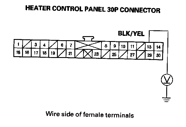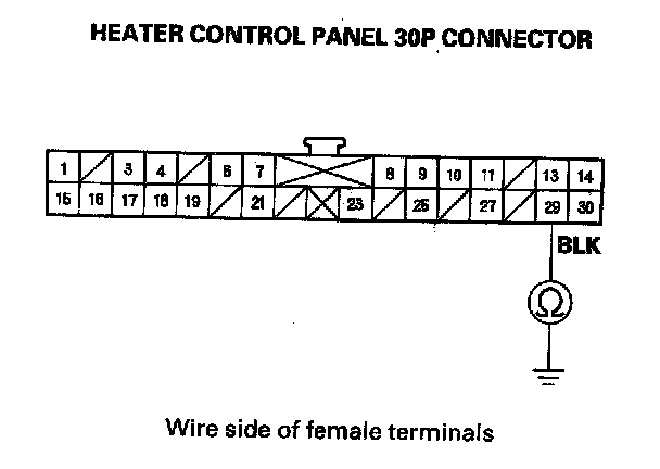 6. Check for continuity between the No. 29 terminal of the heater control panel 30P connector and body ground.