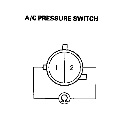 5. Check for continuity between the No. 1 and No. 2 terminals of the A/C pressure switch.