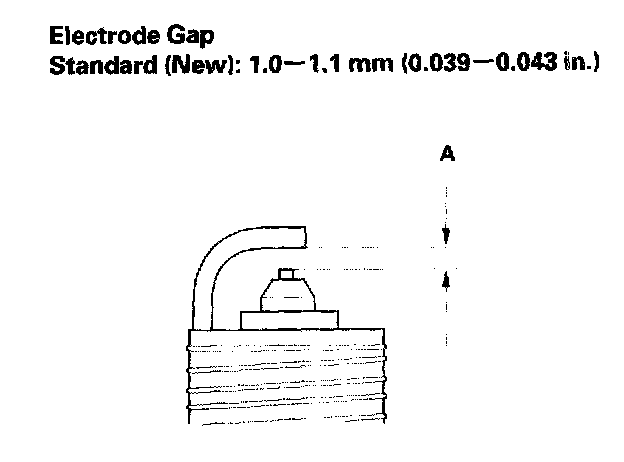 2. Do not adjust the gap (A) of iridium tip plugs. replace the spark plug if the gap is out of specification.