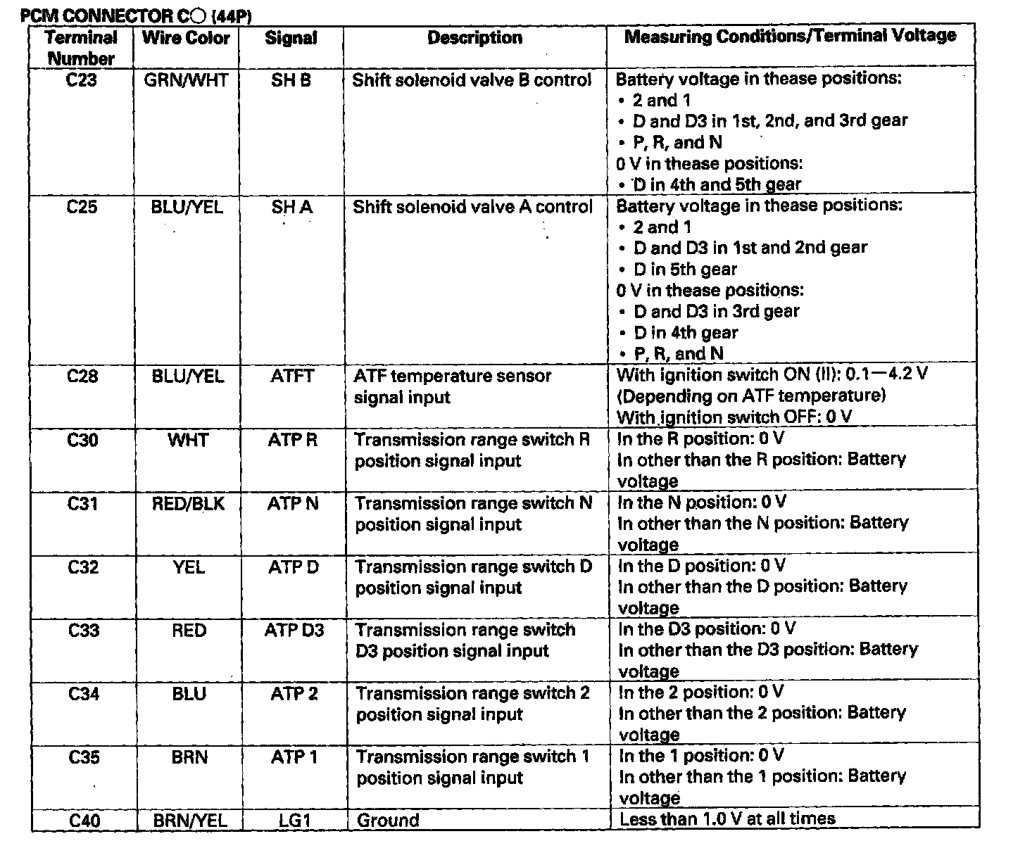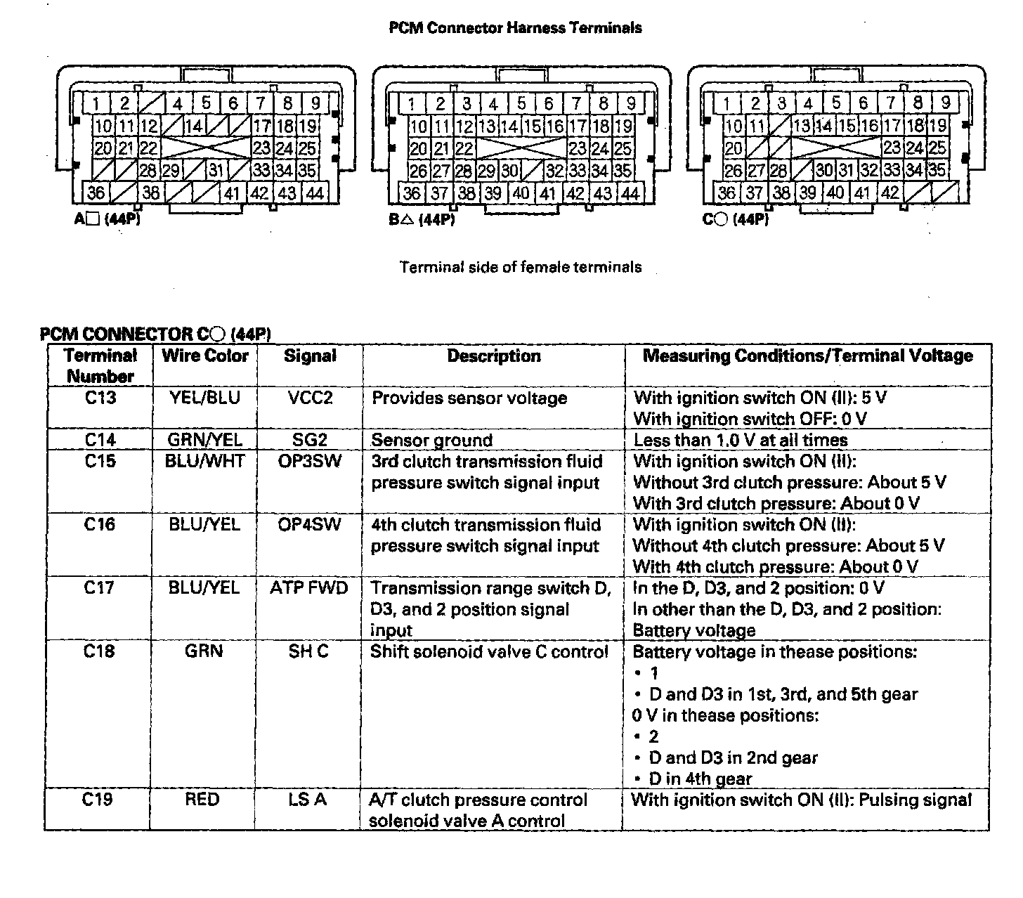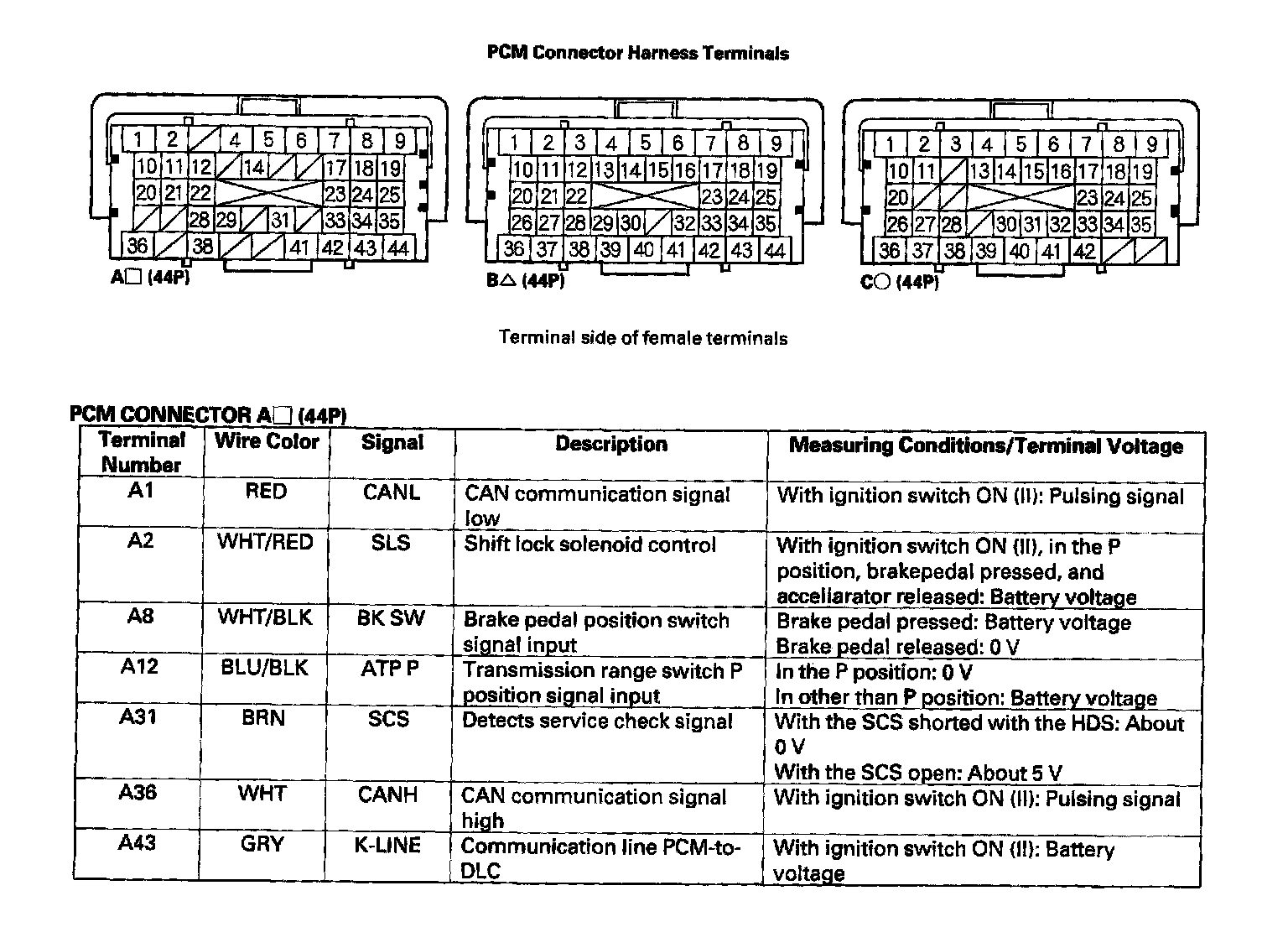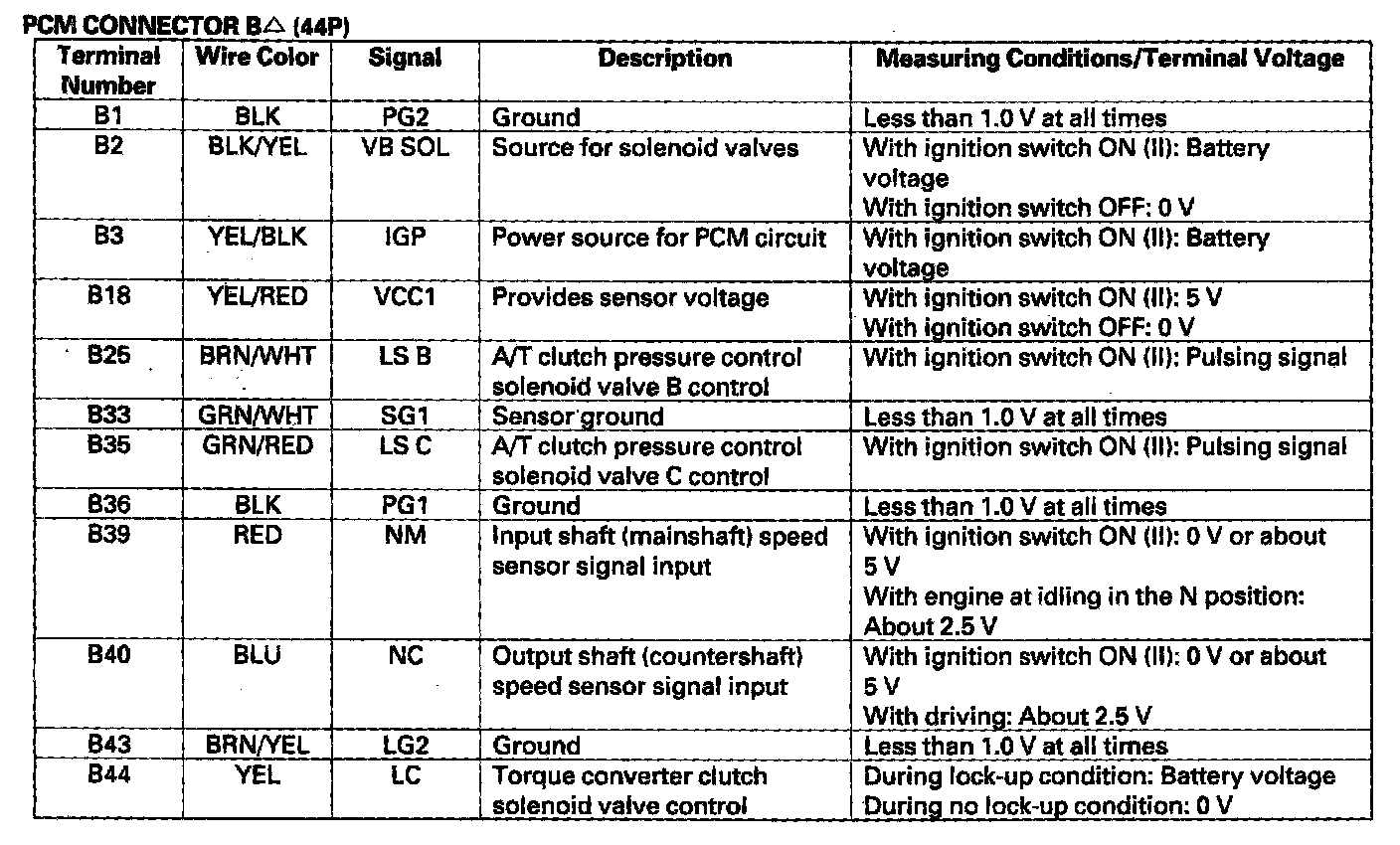Pinout Values and Diagnostic Parameters