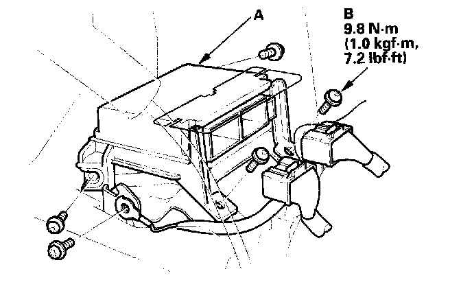 1. Install the new SRS unit (A) with Torx bolts (B), then connect the connectors to the SRS unit; push it into position until it clicks.