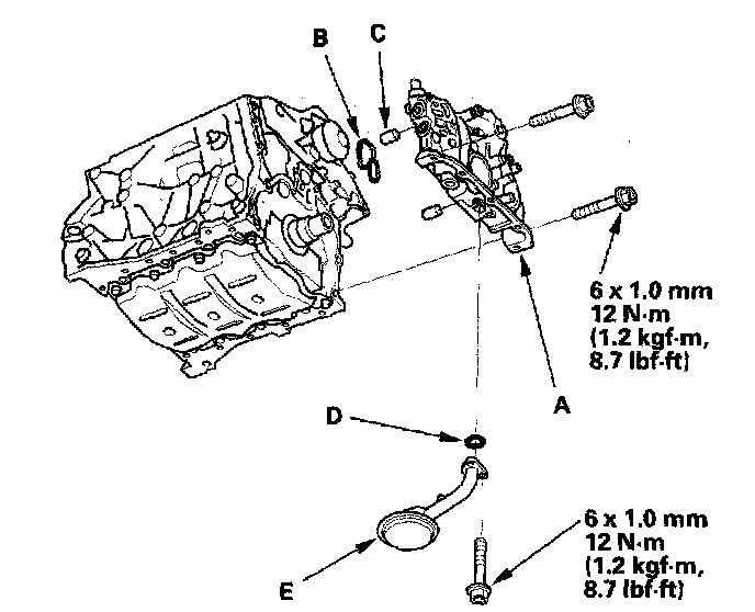 - 1 Apply liquid gasket, P/N 08717-0004, 08718-0001, 08718-0003, or 08718-0009, evenly to the engine block mating surface of the oil pump.