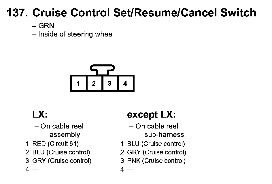 137. Cruise Control Set/Resume/Cancel Switch: