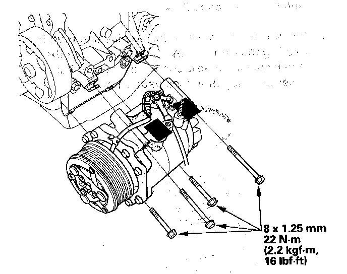 9. Install the A/C compressor in the reverse order of removal, and note these items: