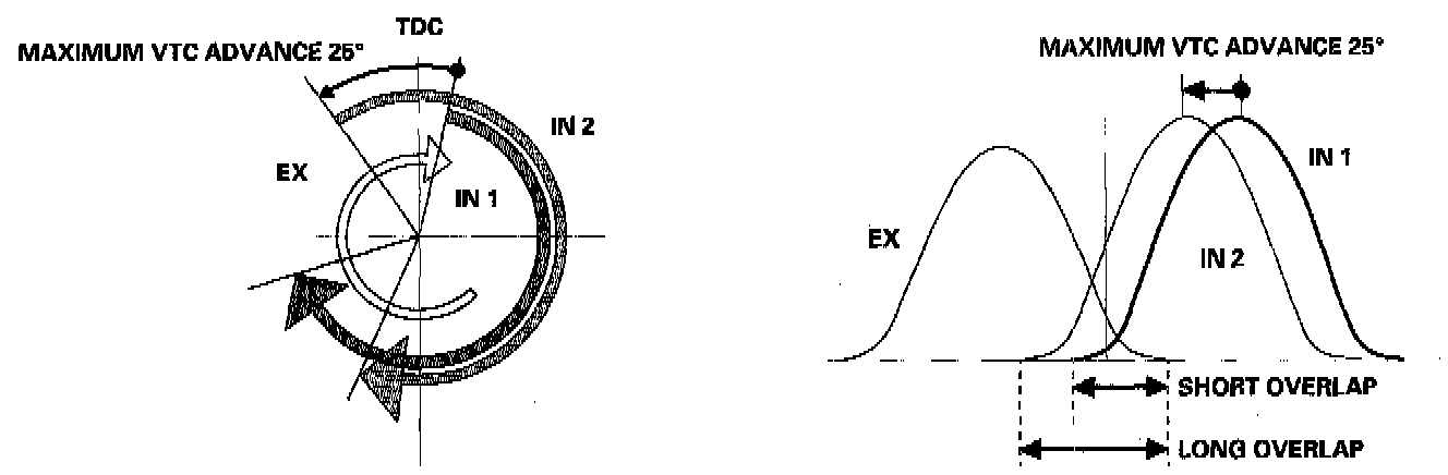 - The VTC system makes continuous intake valve timing changes based on operating conditions.