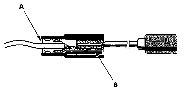 3. If you cannot get to the wire side of the connector or the wire side is sealed (A), disconnect the connector and probe the terminals (B) from the terminal side. Do not force the probe into the connector.