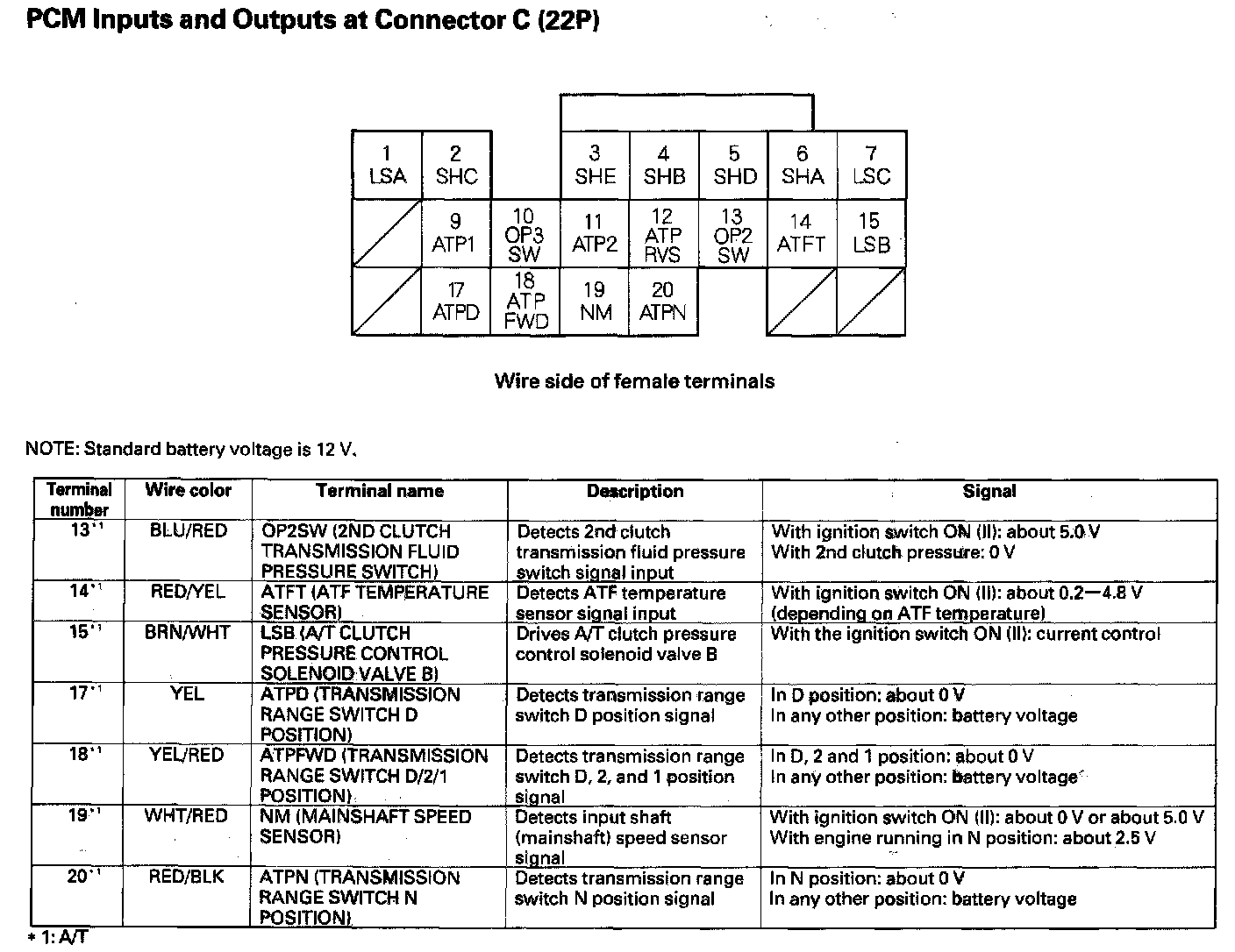 PCM Inputs And Outputs At Connector C (22P) Part 1:
