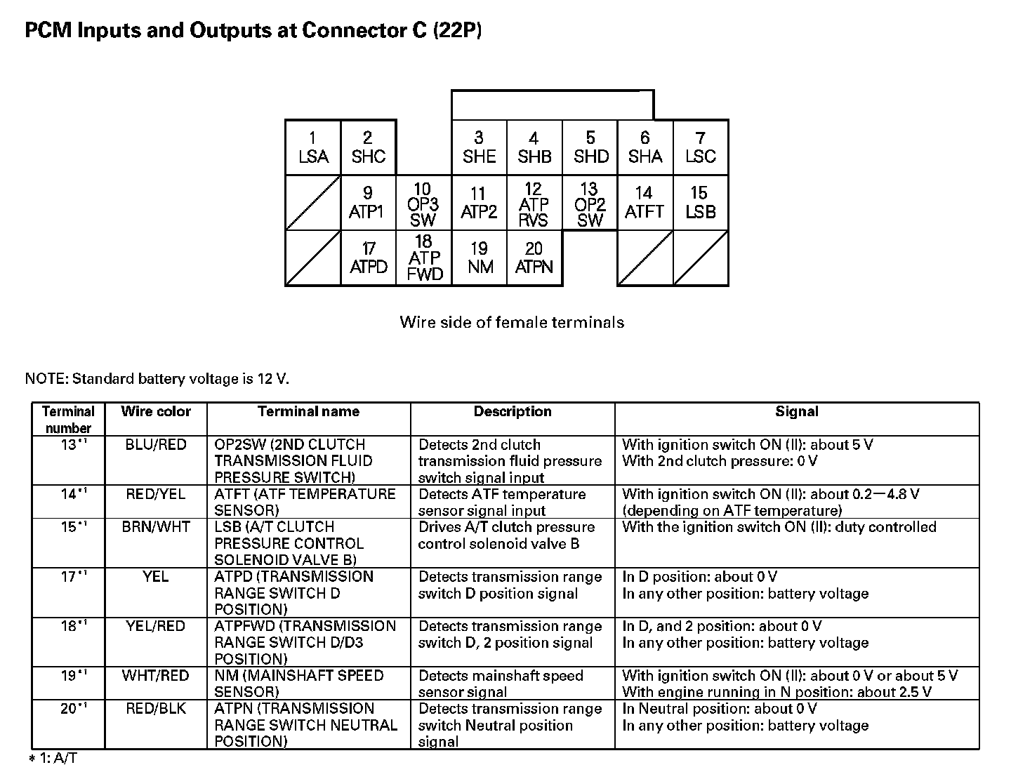 PCM Inputs And Outputs At Connector C (22P) Part 1: