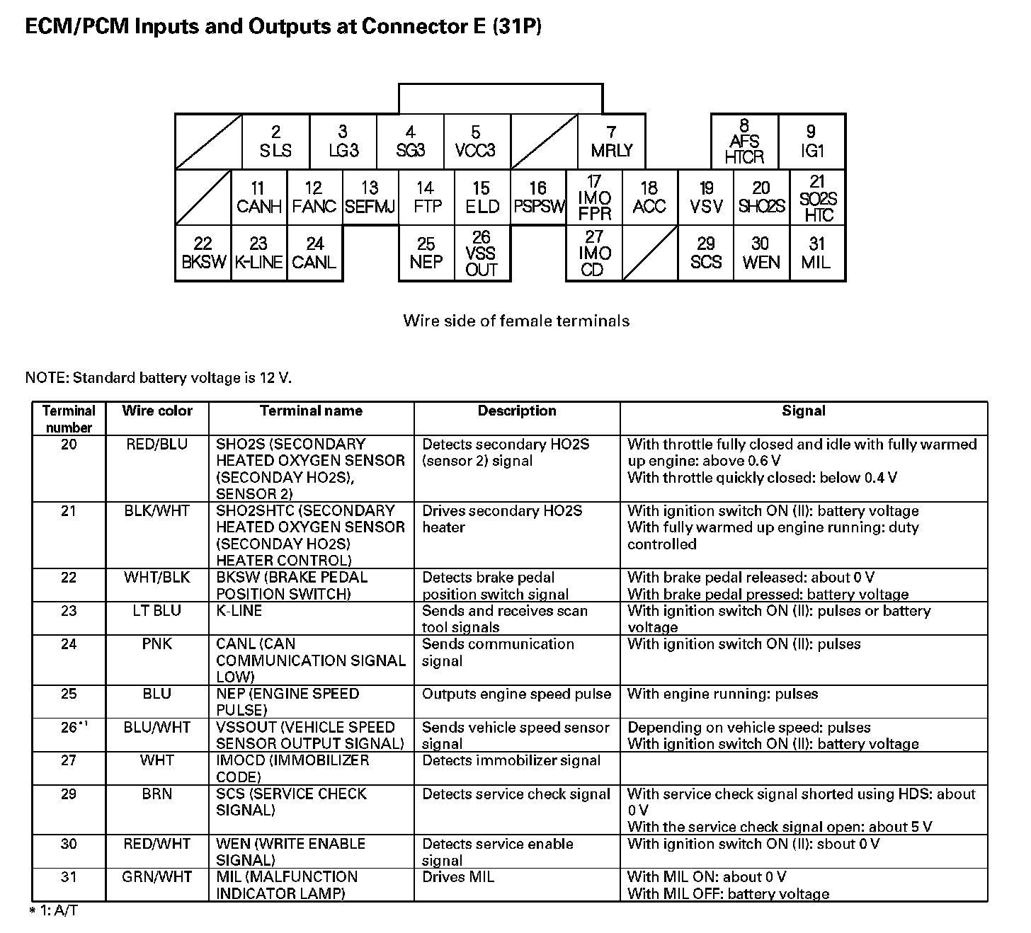 ECM/PCM Inputs And Outputs At Connector E (31P) Part 1: