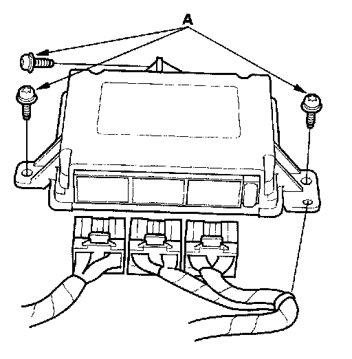 7. Disconnect the connectors and remove the Torx bolts (A), then pull out the SRS unit.