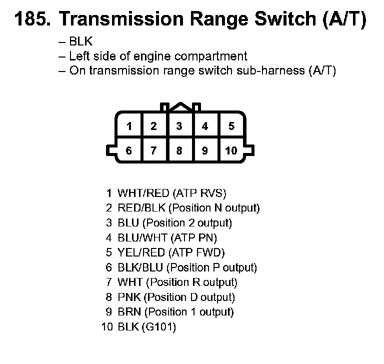 185. Transmission Range Switch (A/T):