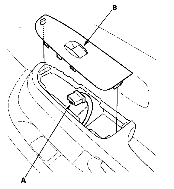 2. Disconnect the 5P connector (A) from the power window switch (B).