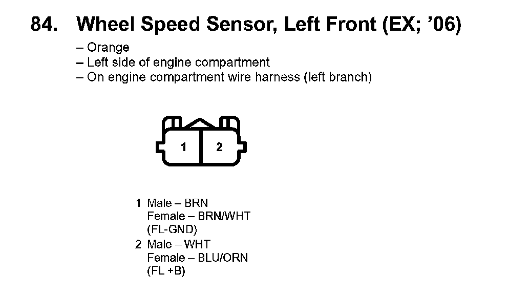 84. Wheel Speed Sensor, Left Front (EX;'06):