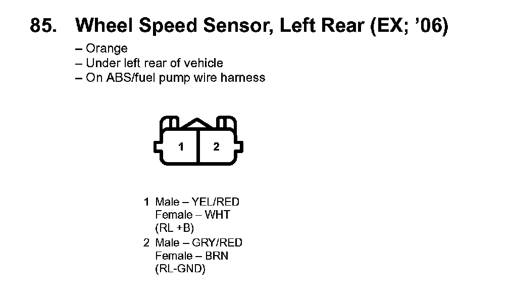 85. Wheel Speed Sensor, Left Rear (EX; '06):