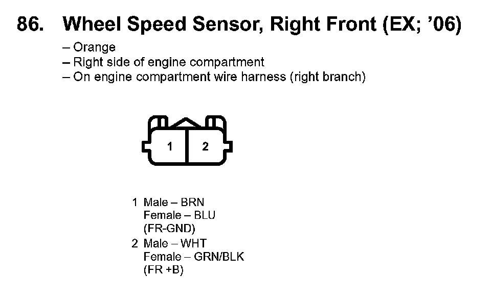 86. Wheel Speed Sensor, Right Front (EX; '06):