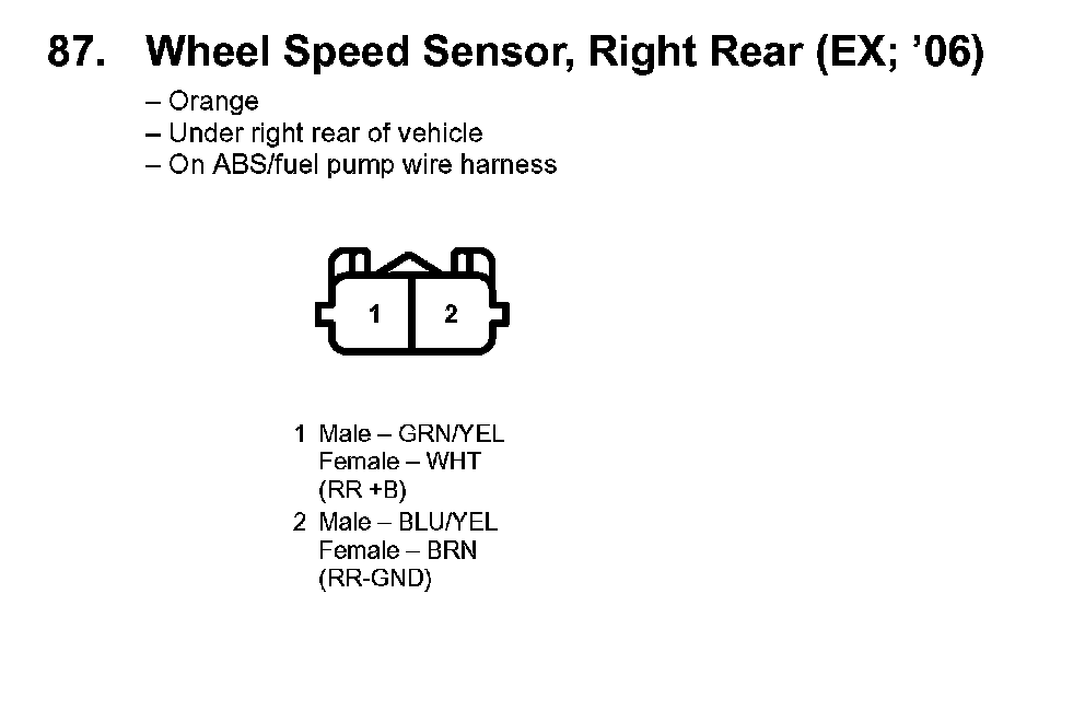 87. Wheel Speed Sensor, Right Rear (EX; '06):
