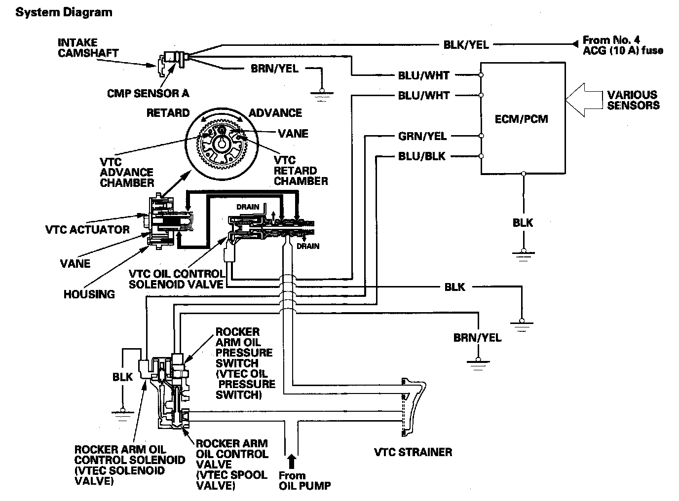 - The system reduces the cam advance at idle, stabilizes combustion, and reduces engine speed.