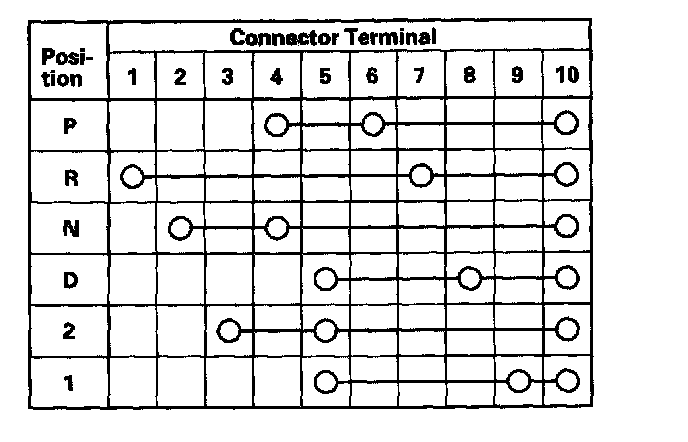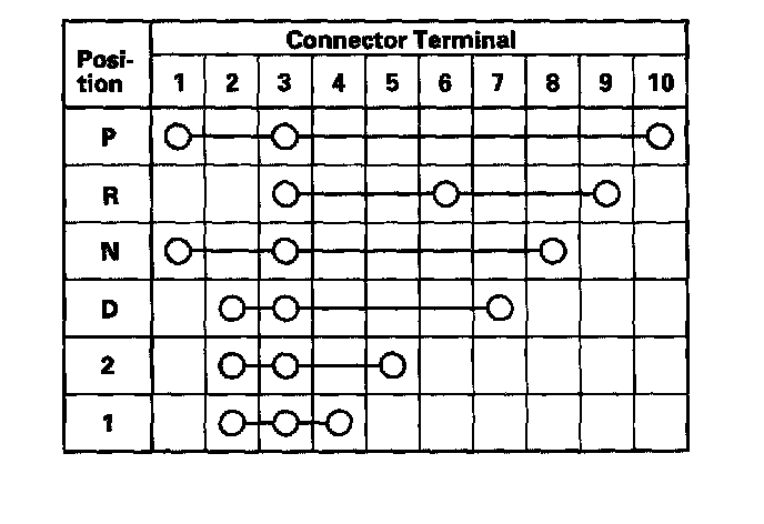 3. If there is no continuity between any terminals, remove the transmission range switch cover, and disconnect the connector at the switch.