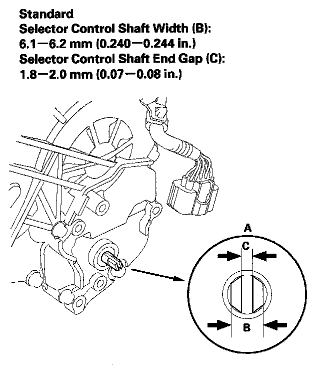 7. The measurement of the selector control shaft end is within the standard, replace the transmission range switch. If the measurement is out of the standard, repair the selector control shaft end, and recheck the transmission range switch continuity.