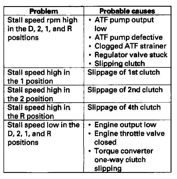 Stall Speed Test1. Make sure the transmission fluid is filled to the proper level.
