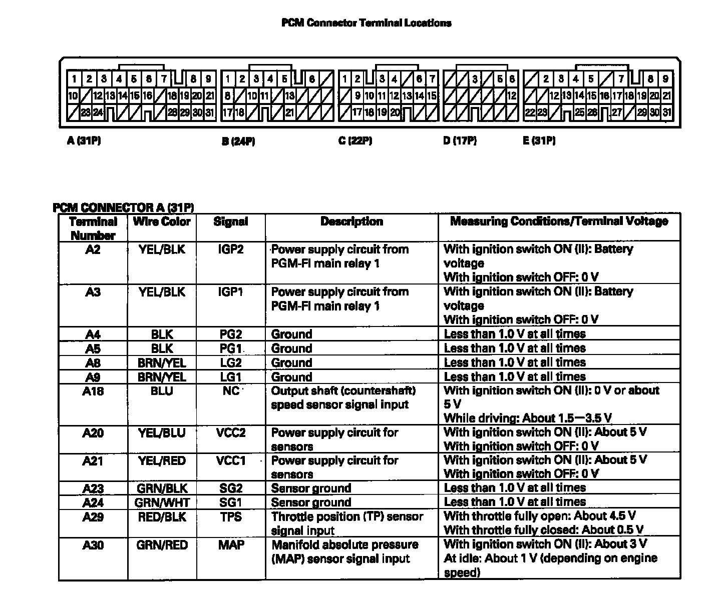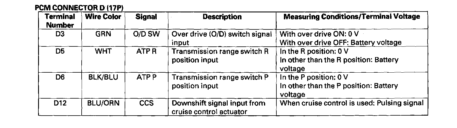 PCM Inputs and Outputs: