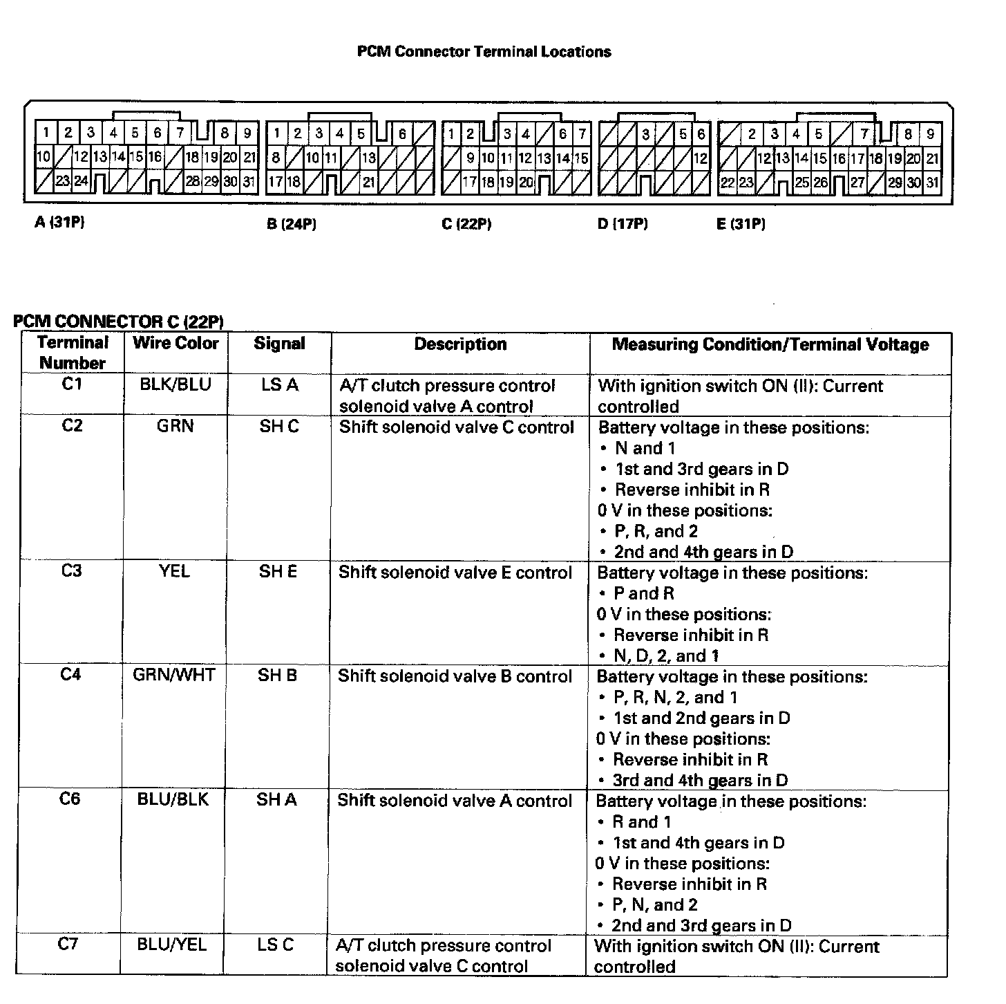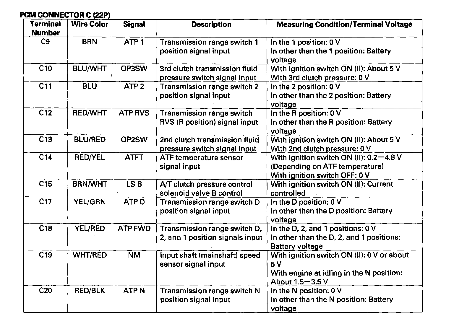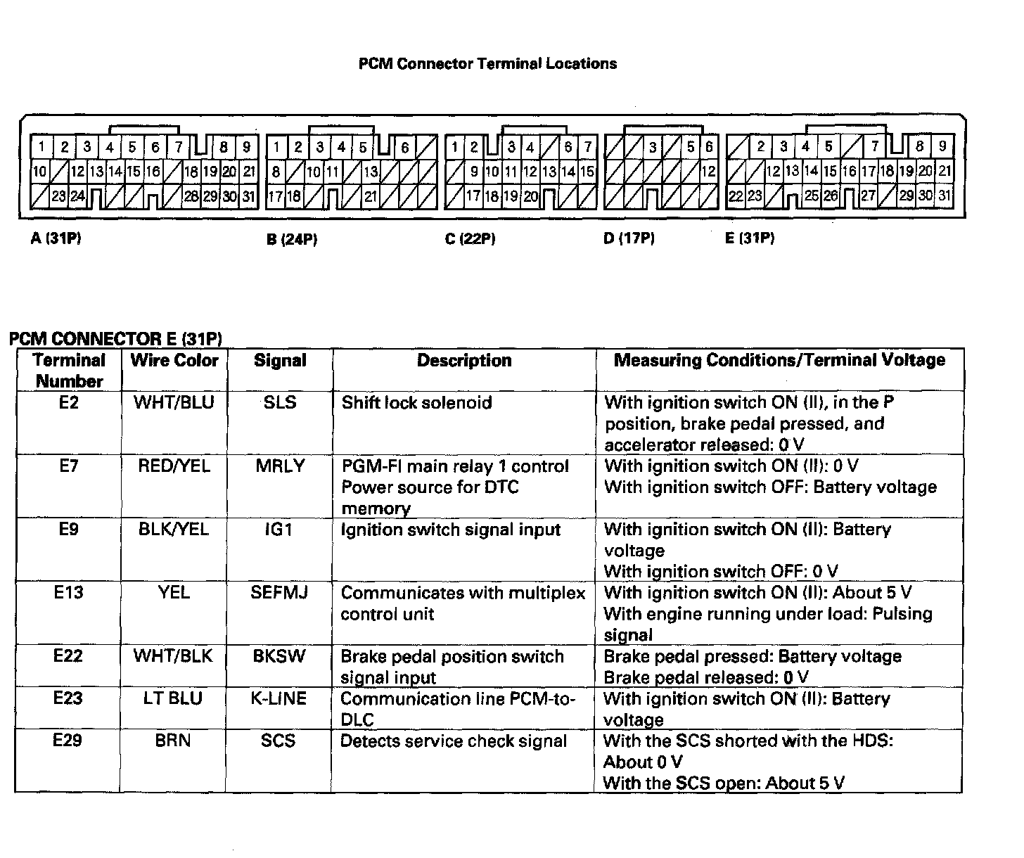 Pinout Values and Diagnostic Parameters