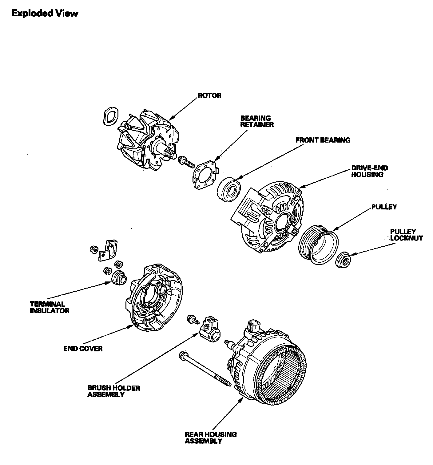 22. After assembling the alternator, turn the pulley by hand to make sure the rotor rotates smoothly and without noise.