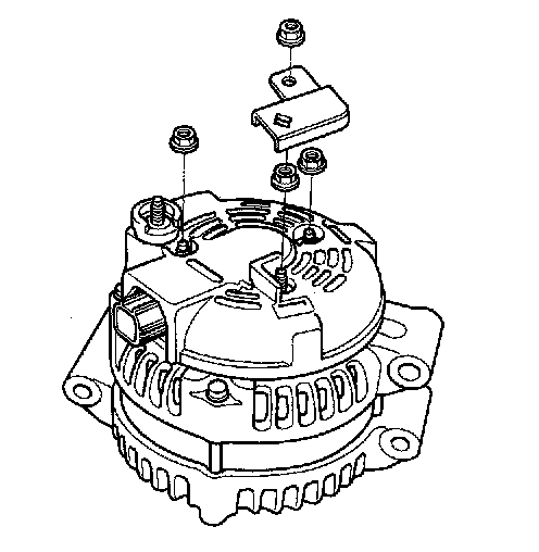 4. Remove the harness stay and the three flange nuts from the alternator.