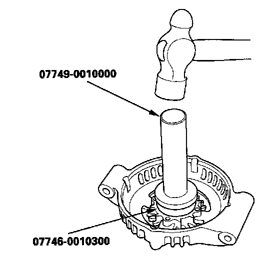 12. With a hammer and special tools, install a new front bearing in the drive-end housing